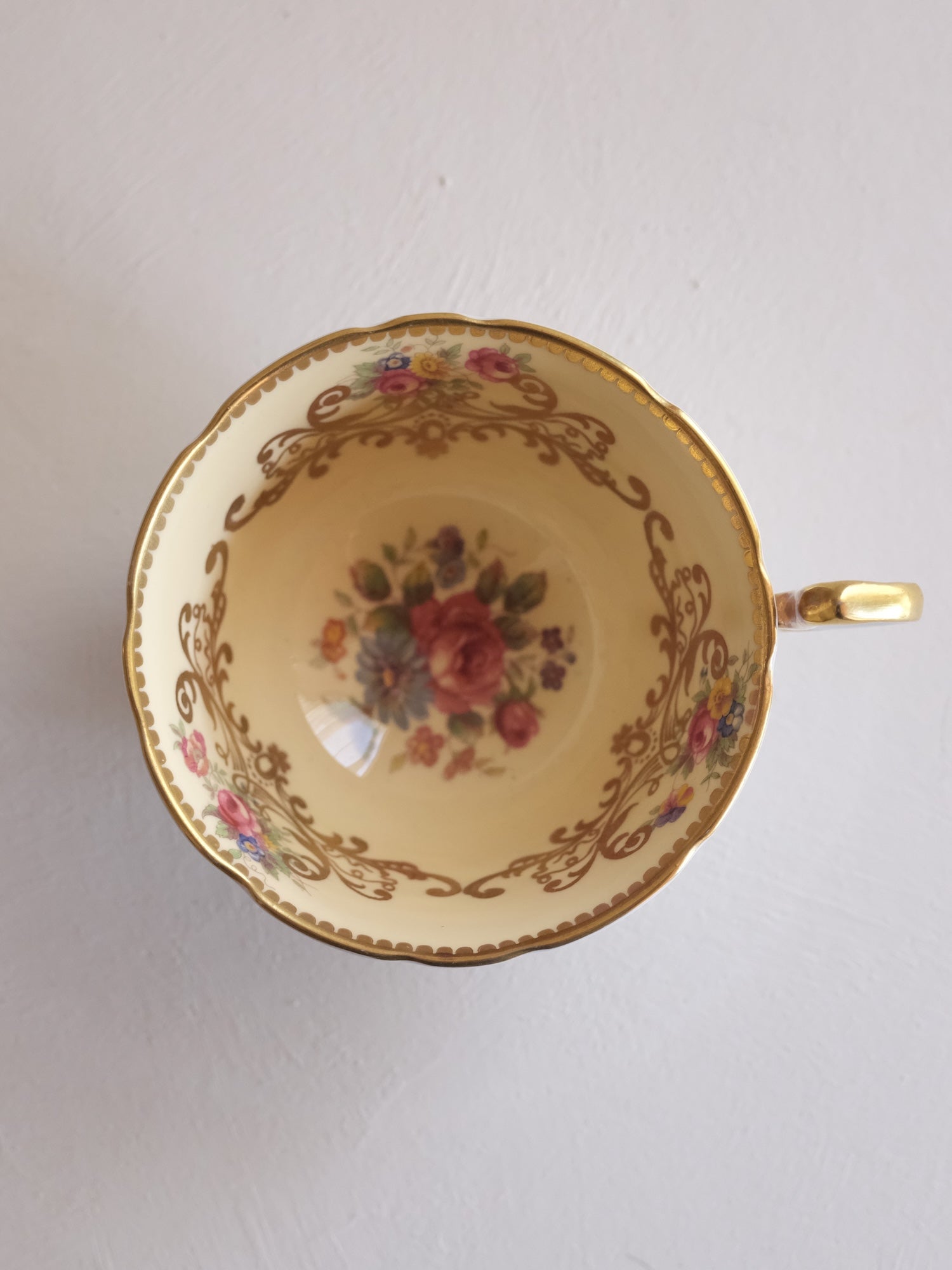 Aynsley Cup & Saucer “C963” – Dresden Floral Gold Scrollwork