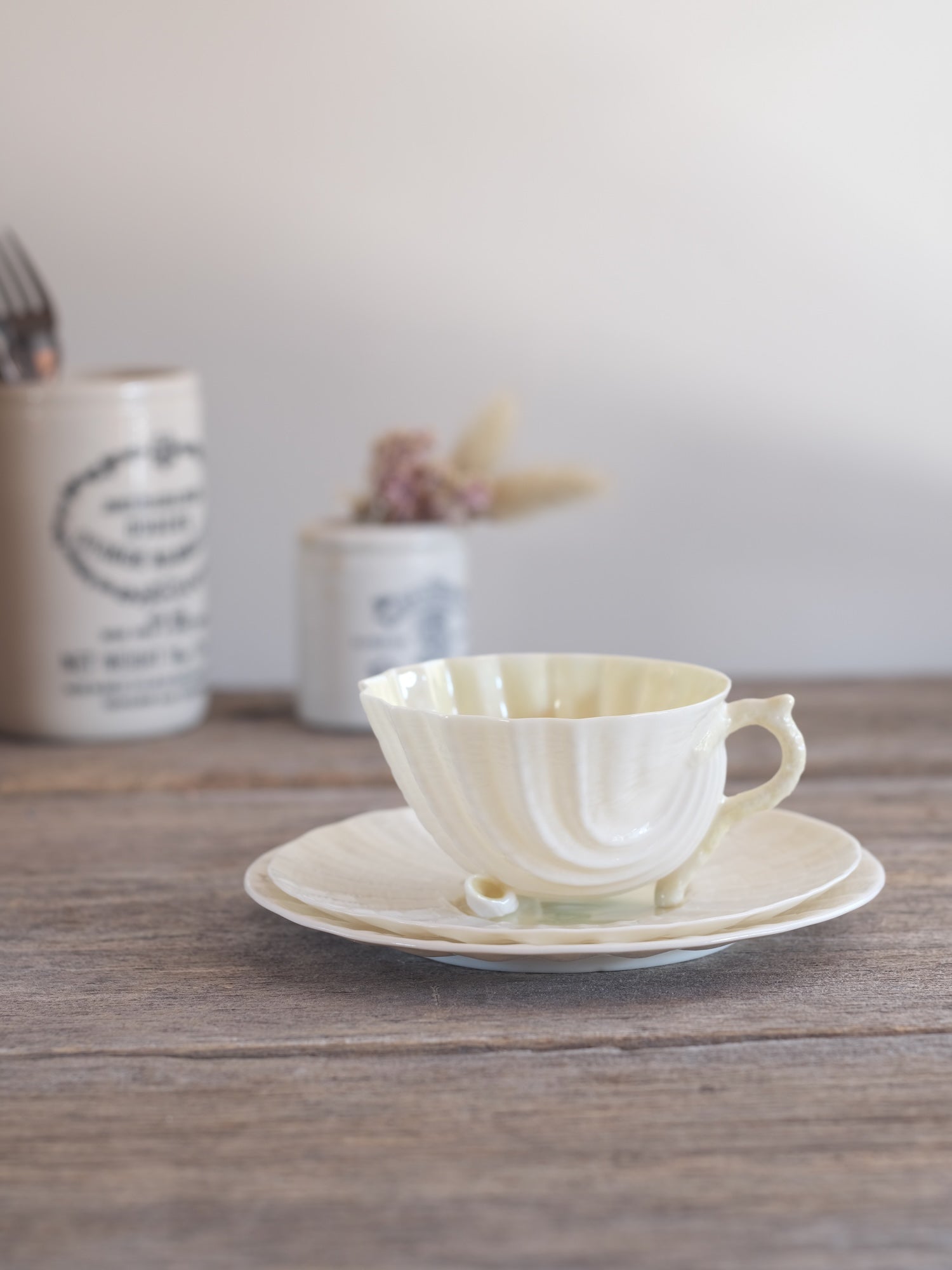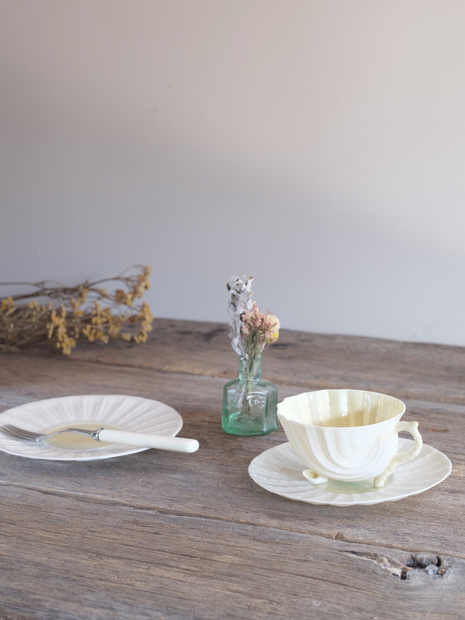 Belleek の軽やかさは決して弱さではなく、一つずつの型づくり、磨き、仕上げを経て生まれる職人技の精度そのものであることに気付かされます。静けさのなかに潜む力強さ。一見相反するふたつの魅力が、この器に息づいています。
